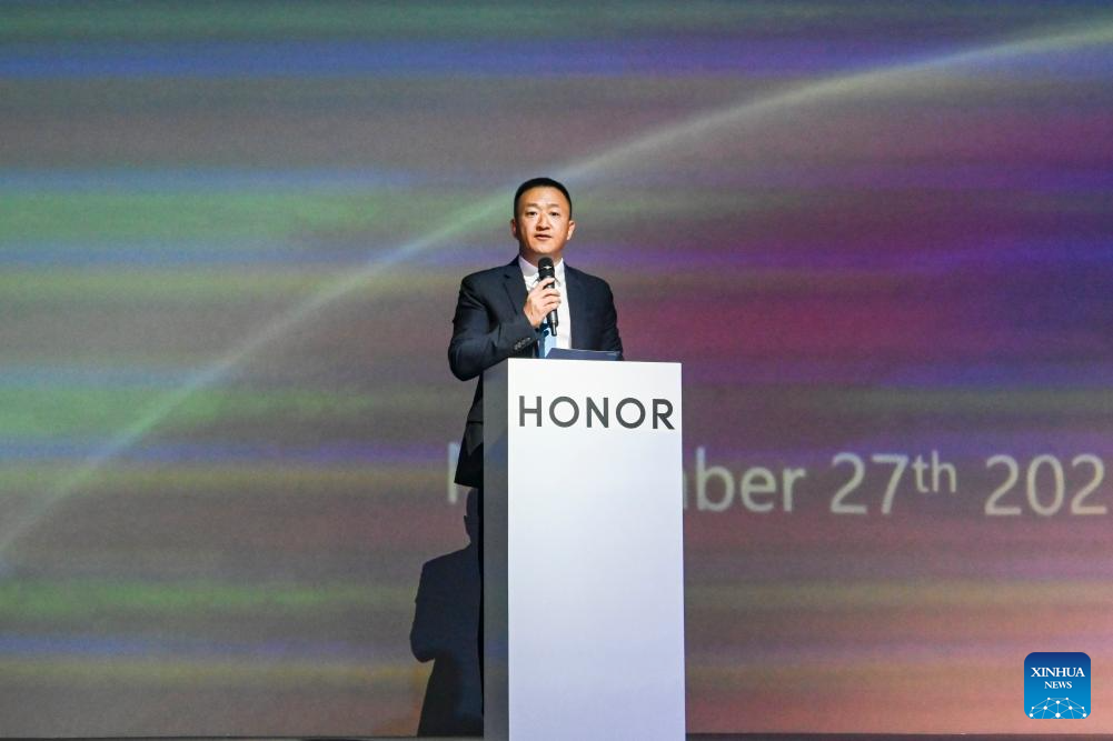 Senior Vice President of HONOR Martin Xu speaks during HONOR AI + Design Summit 2025 (APAC Edition) in Kuala Lumpur, Malaysia, Nov. 27, 2025 (Xinhua/Cheng Yiheng)