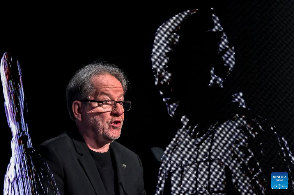 Laszlo Baan, director general of the Museum of Fine Arts in Budapest, speaks during the opening ceremony of the exhibition "Civilization of the Qin and Han Dynasties - The First Chinese Emperor's Terracotta Warriors" in Budapest, Hungary, Nov. 27, 2025. The Museum of Fine Arts in Budapest on Thursday opened one of the most significant Chinese cultural exhibitions ever held in Hungary, presenting more than 150 ancient artworks from the Qin and Han dynasties (221 BC-220 AD), including ten original Terracotta Warriors.