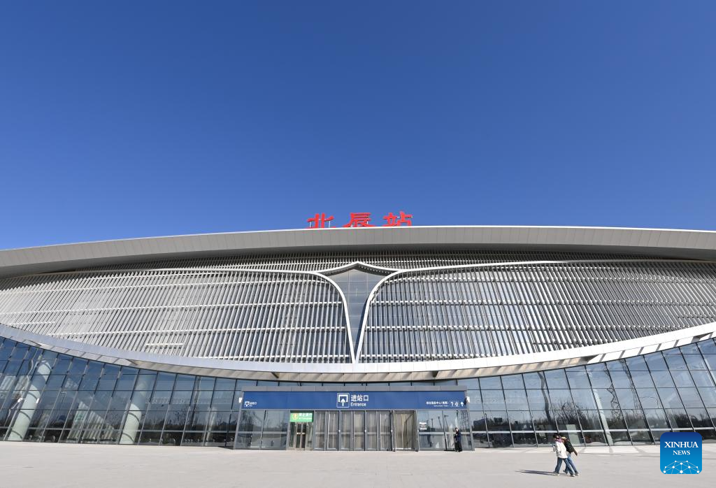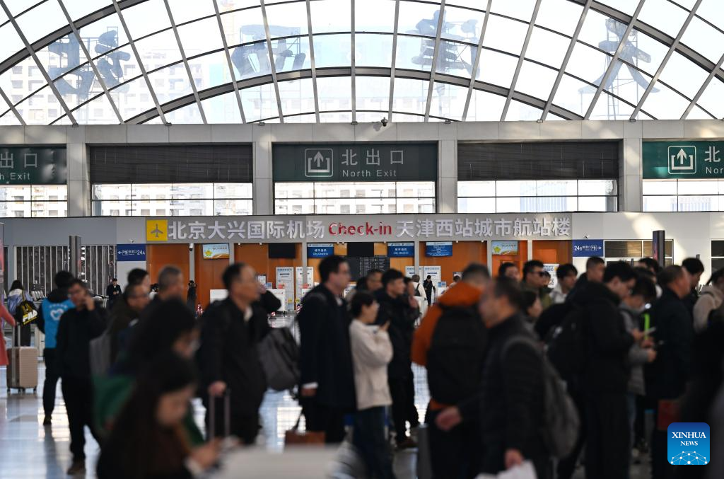 Passengers enters the Beichen Railway Station in Tianjin, north China, Nov. 25, 2025. Tianjin achieved significant progress in the construction of its high-speed rail intercity network during the 14th Five-Year Plan period (2021-2025). The "30-minute commuting circle" among Beijing, Tianjin and core area of Xiong'an, along with the "1-to-1.5-hour transportation circle" connecting major cities in the Beijing-Tianjin-Hebei region have turned into reality.