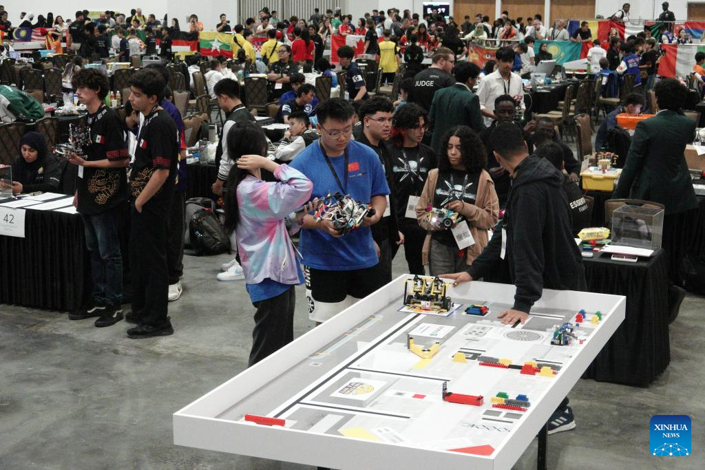 Competitors make preparations at the World Robot Olympiad (WRO) International Final 2025 in Singapore, Nov. 27, 2025. The three-day competition was held here from Wednesday to Friday. (Photo by Then Chih Wey/Xinhua)