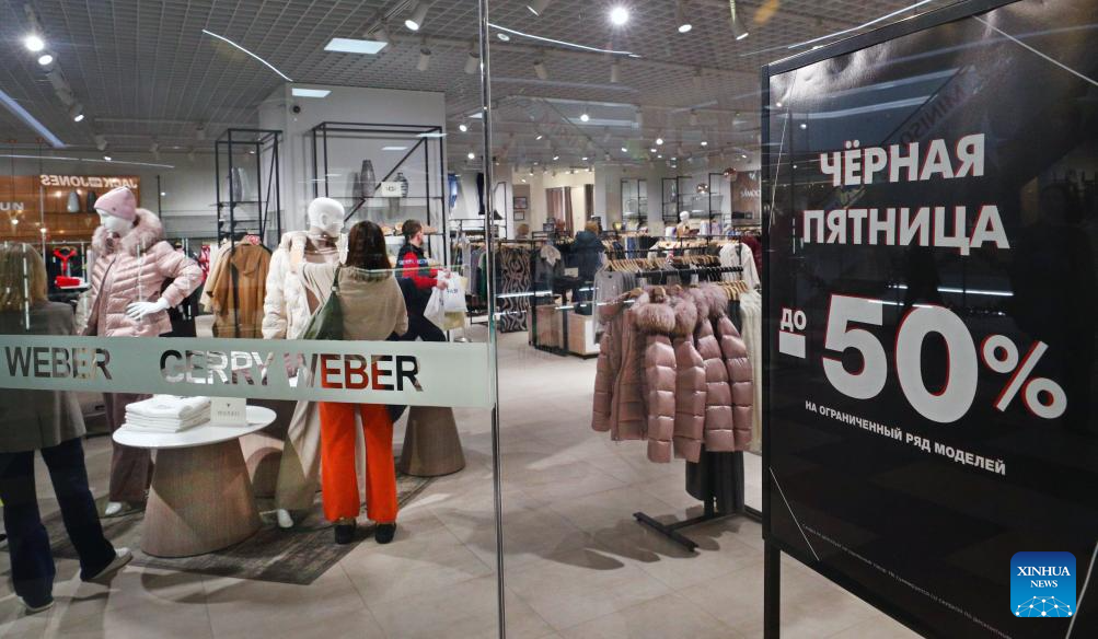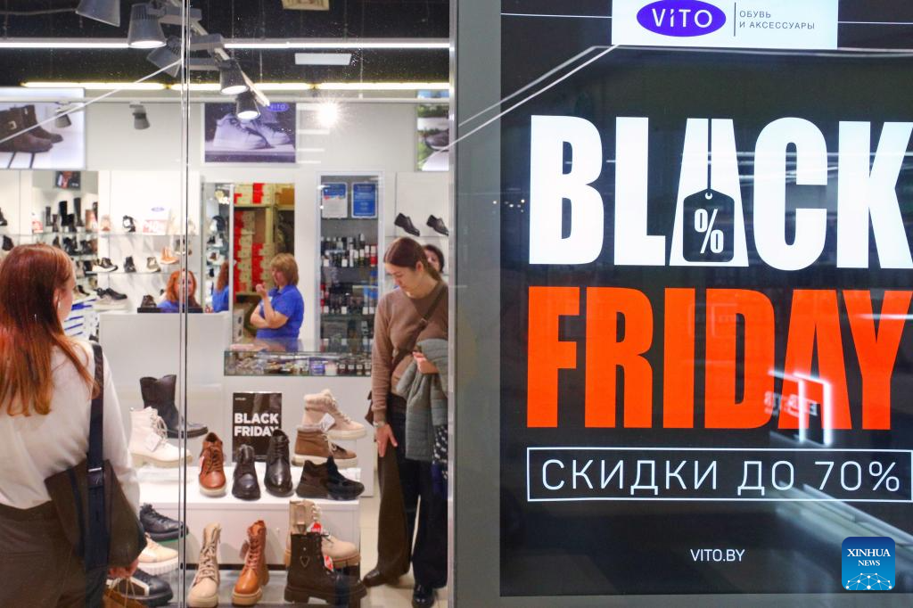 Customers select goods at a shop during Black Friday sales event in Minsk, Belarus, Nov. 28, 2025. (Photo by Henadz Zhinkov/Xinhua)