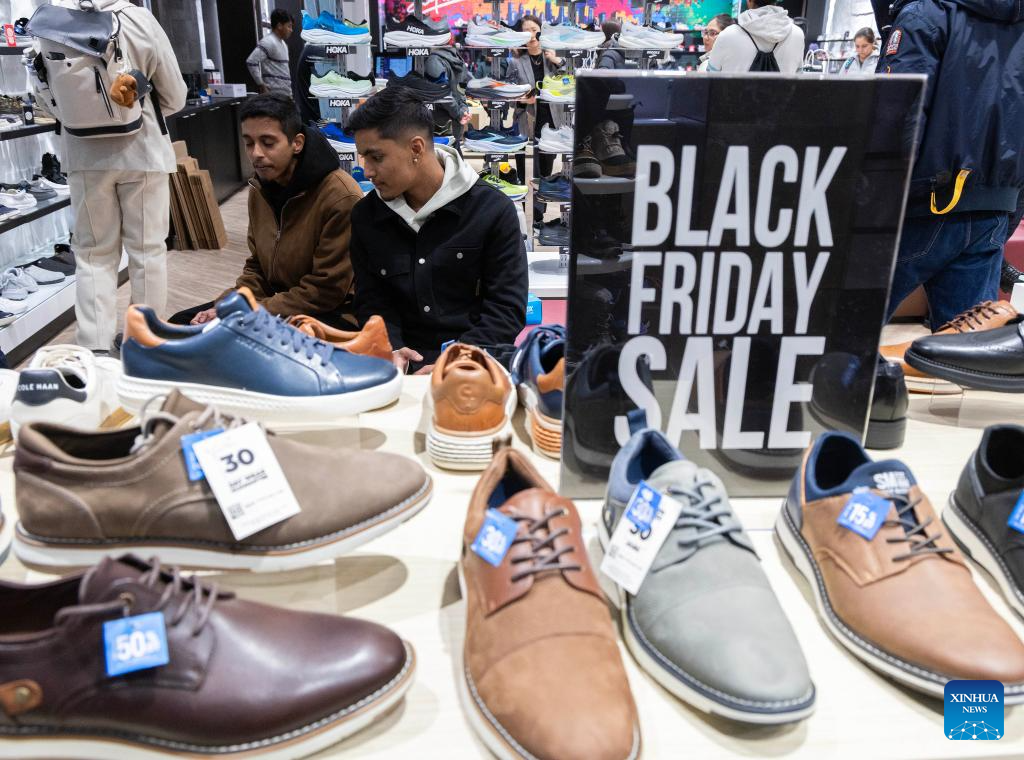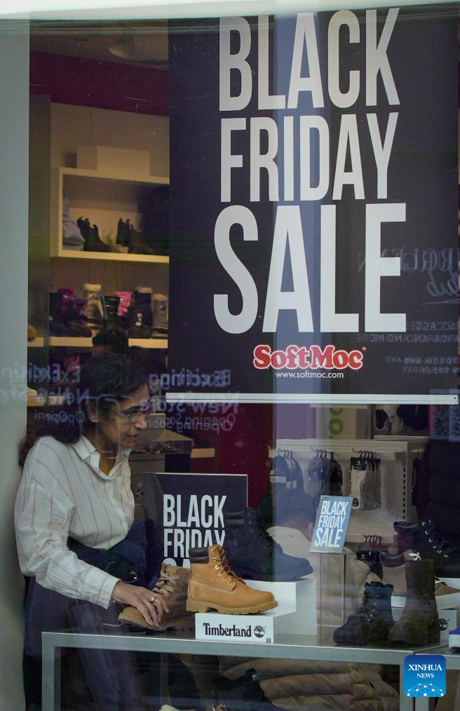 A customer selects goods at a shop during Black Friday sales event in Richmond, Canada, Nov. 28, 2025. (Photo by Liang Sen/Xinhua)