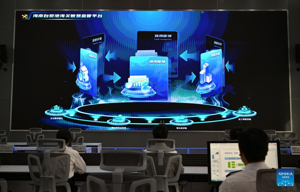 This photo shows the screen of an on-line platform for smart customs supervision of Hainan Free Trade Port at the service operation monitoring center of the Haikou Customs in Haikou, south China's Hainan Province, Nov. 27, 2025. China's Hainan Free Trade Port (FTP) will launch island-wide independent customs operations as of Dec. 18, a major milestone in the opening-up drive of the world's second-largest economy despite rising protectionism worldwide. (Xinhua/Guo Cheng)