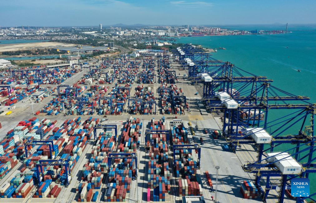 An aerial drone photo taken on Nov. 28, 2025 shows a view of the Yangpu Port in the Yangpu Economic Development Zone in Danzhou, south China's Hainan Province. China's Hainan Free Trade Port (FTP) will launch island-wide independent customs operations as of Dec. 18, a major milestone in the opening-up drive of the world's second-largest economy despite rising protectionism worldwide. (Xinhua/Guo Cheng)