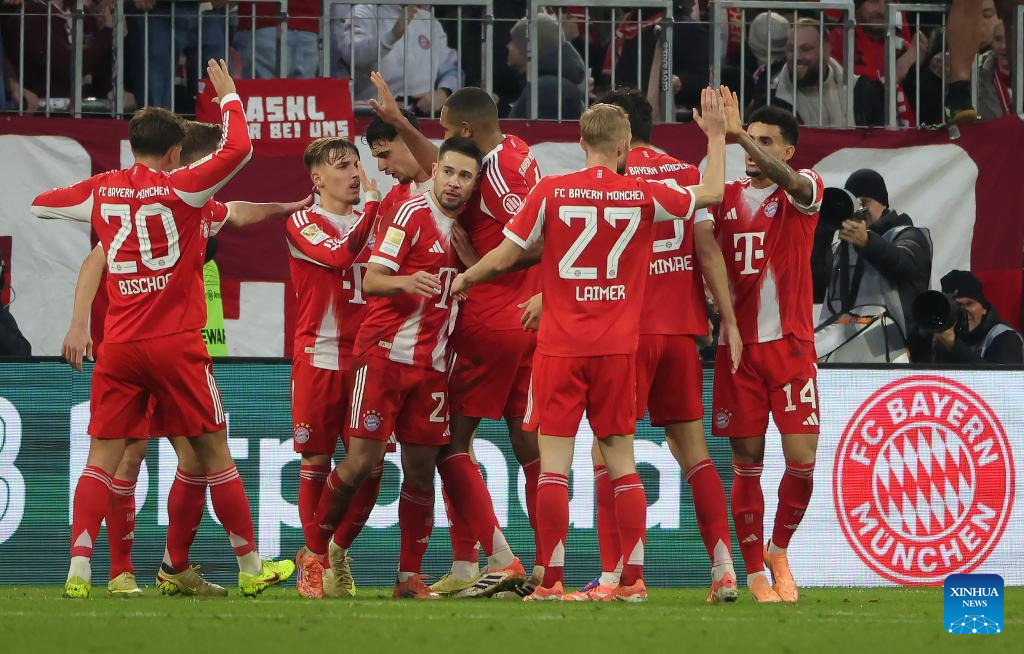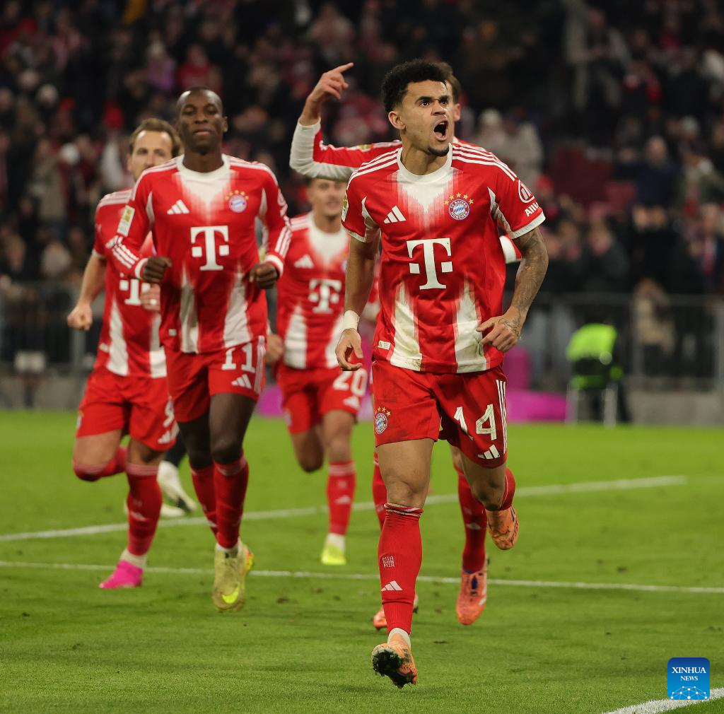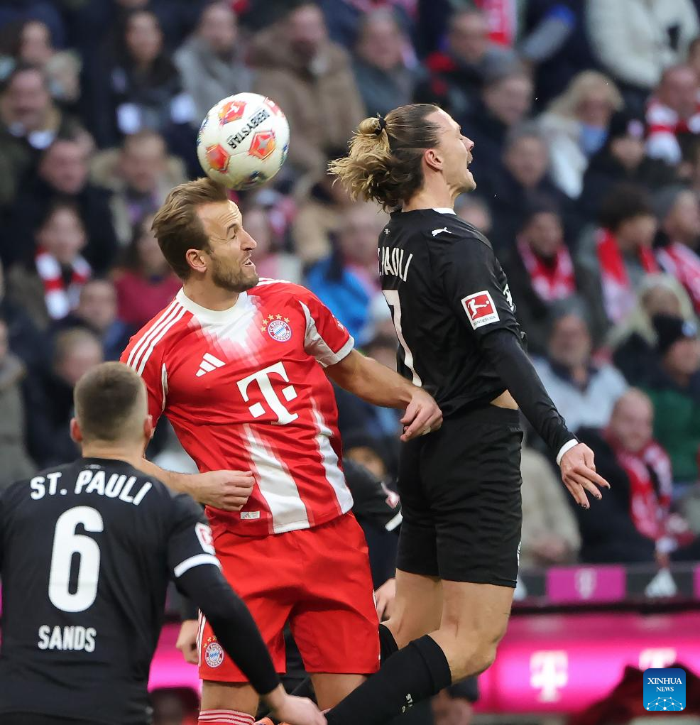 BERLIN, Nov. 29 (Xinhua) -- Two stoppage-time goals from Luis Diaz and Nicolas Jackson fueled Bayern Munich to a 3-1 home win over St. Pauli to maintain its lead at the top of the Bundesliga on Saturday.