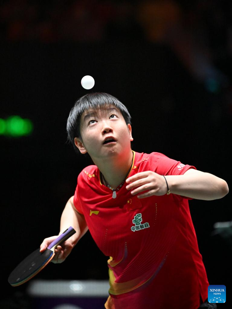 Chinese paddlers felt at ease in their second group match, as Kuai Man and Lin Shidong crushed Egypt's Badr Mostafa and Marwa Alhodaby 11-3, 11-3, 11-7 in the mixed doubles, followed by world No.1 Sun Yingsha of China winning over Mariam Alhodaby 11-4, 14-12, 11-4 in the women's singles. Top-ranked Wang Chuqin secured the victory by seeing off Youssef Abdelaziz of Egypt 11-5, 11-4 in the men's singles.
