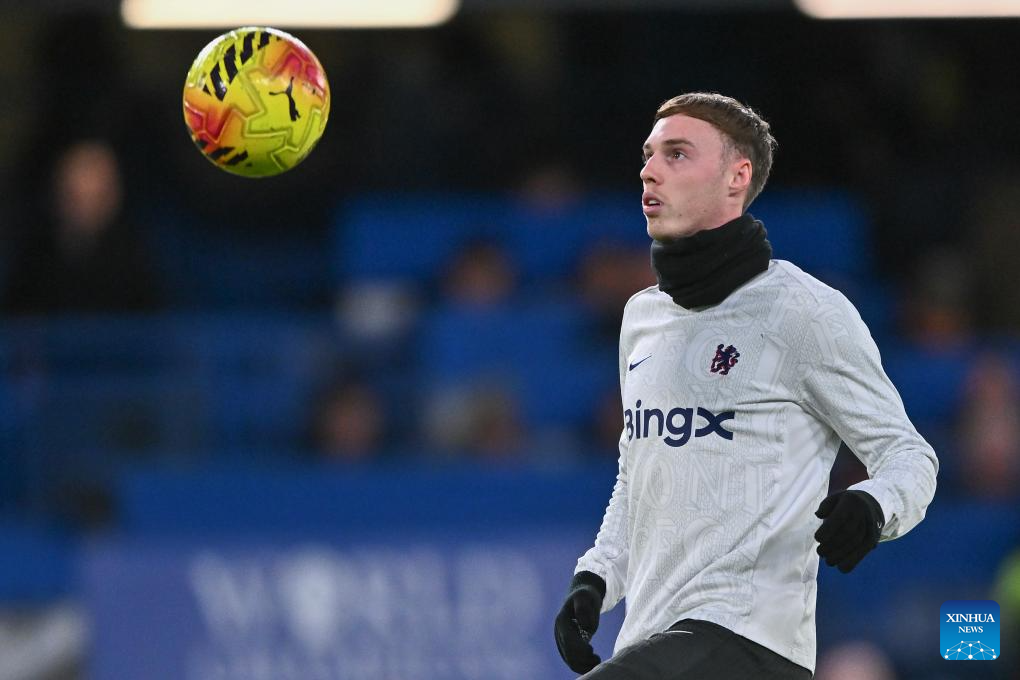 Cole Palmer of Chelsea warms up prior to the English Premier League match between Arsenal FC and Chelsea FC in London, Britain, on Nov. 30, 2025. (Xinhua)