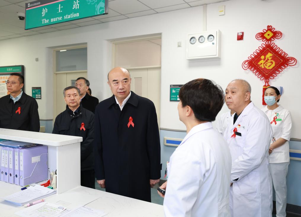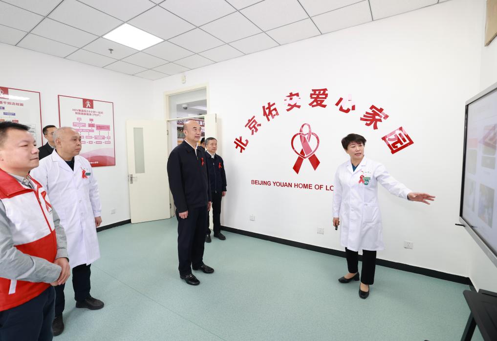 Chinese Vice Premier Liu Guozhong, also a member of the Political Bureau of the Communist Party of China Central Committee, inspects HIV/AIDS prevention and treatment work during a visit to Beijing Youan Hospital in Beijing, capital of China, on Dec. 1, 2025, which marks the 38th World AIDS Day. (Xinhua/Wang Ye)
