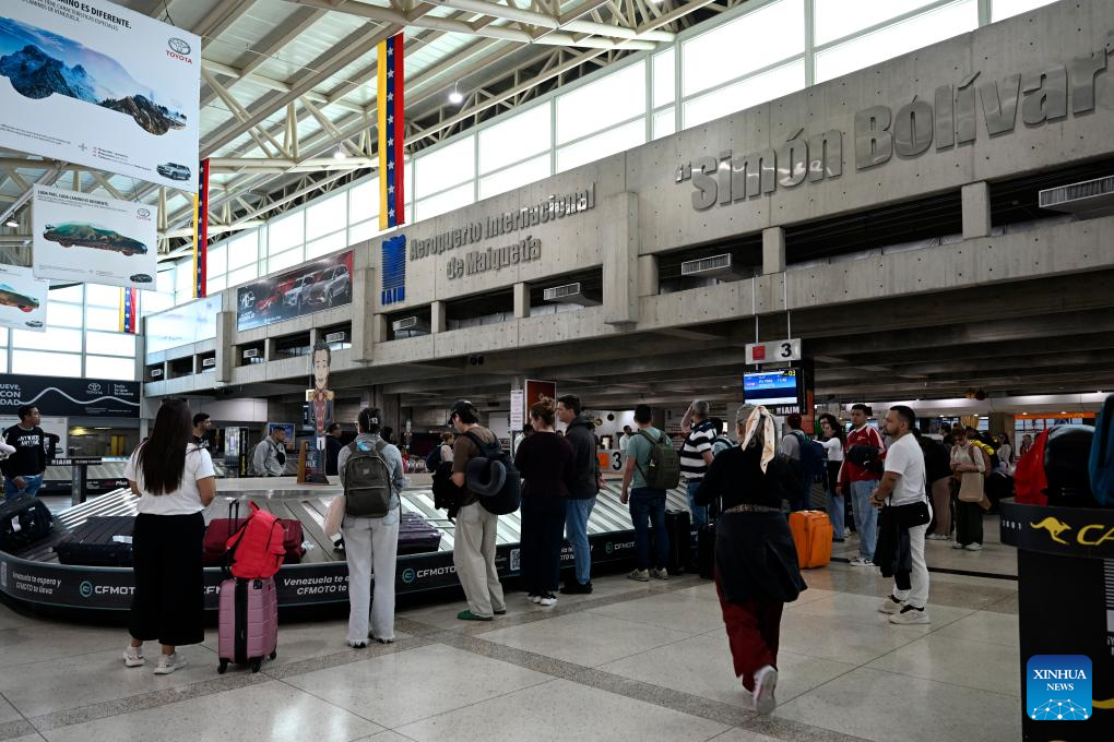 Passengers walk inside the Simon Bolivar International Airport in Maiquetia, Venezuela, Dec. 1, 2025. (Xinhua/Li Muzi)