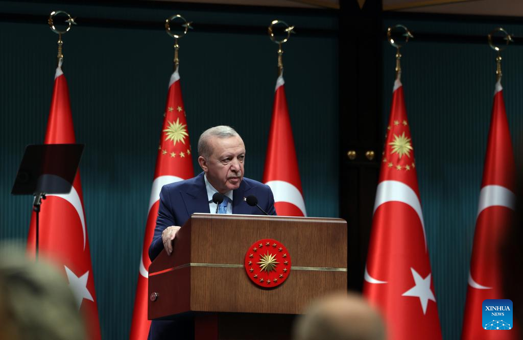 Turkish President Recep Tayyip Erdogan speaks during a press conference at the Presidential Complex in Ankara, Türkiye, Dec. 1, 2025. (Mustafa Kaya/Handout via Xinhua)