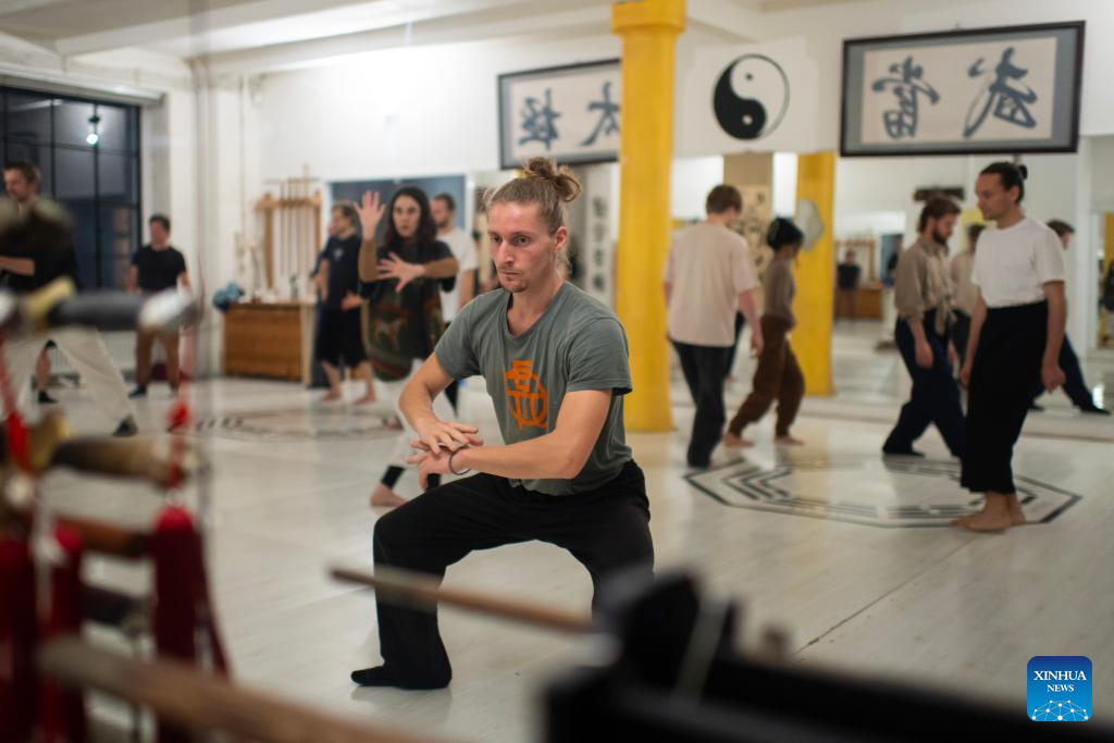 Students practice Tuishou at XUAN-Gong Fu Academy in Berlin, Germany, Nov. 13, 2025. (Xinhua/Zhang Haofu)