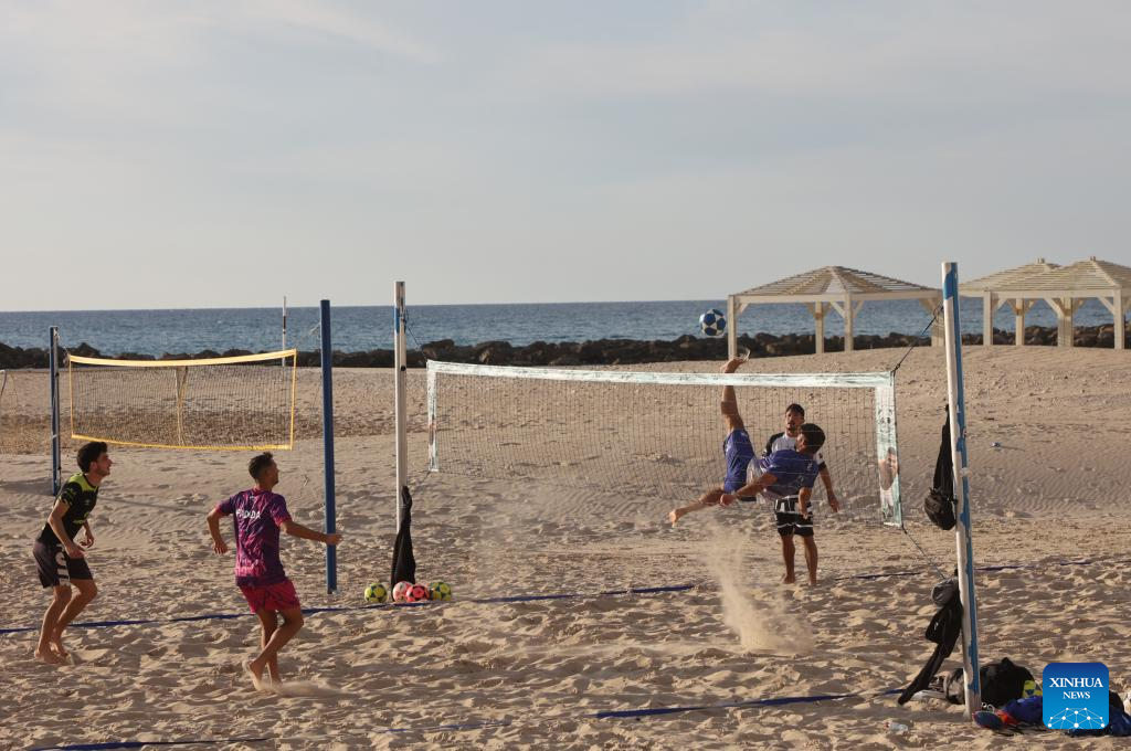 People play on the beach in Haifa, northern Israel, Dec. 3, 2025. (Photo by Gil Cohen Magen/Xinhua)