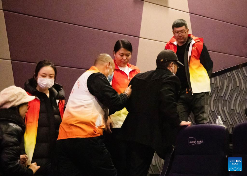 Volunteers help visually-impaired people to find their seats at a cinema in Yingkou, northeast China's Liaoning Province, Dec. 1, 2025. Visually-impaired people enjoyed the barrier-free version of movie "Born to Fly" and movie "Island Keeper" respectively in Yingkou City and Shenyang City of Liaoning lately on the occasion of the 34th International Day of Persons with Disabilities, which fell on Wednesday this year. The movie screening activity was under the Cinema of Light, a public welfare initiative initiated in 2017 by the Communication University of China.