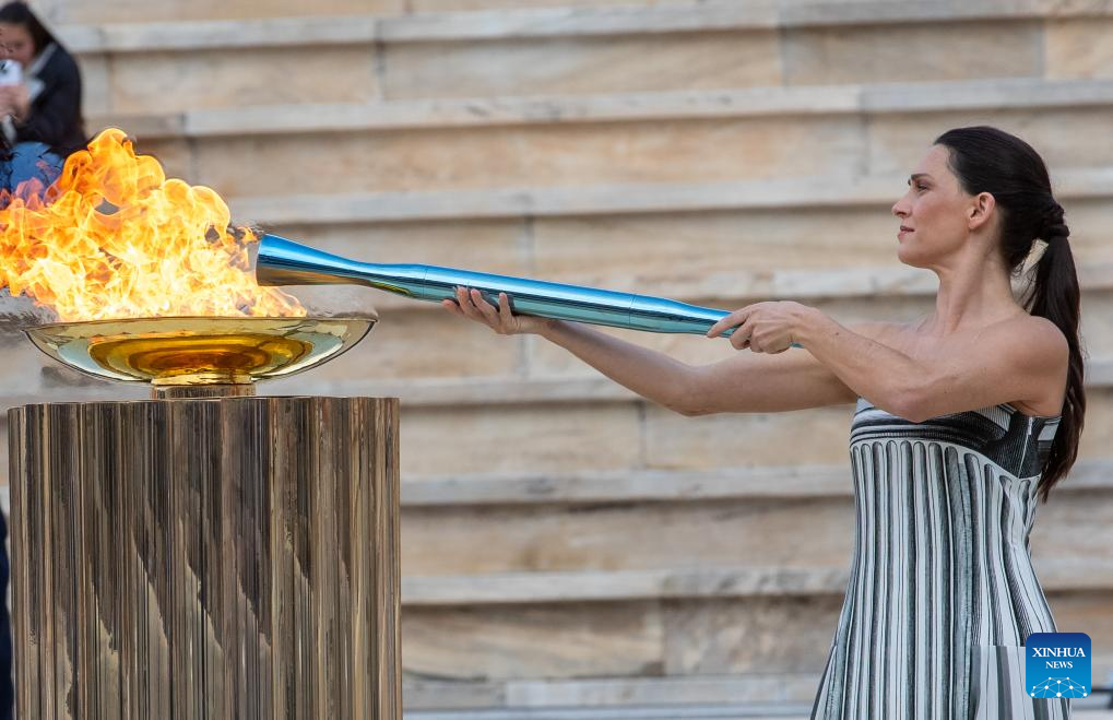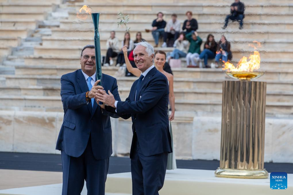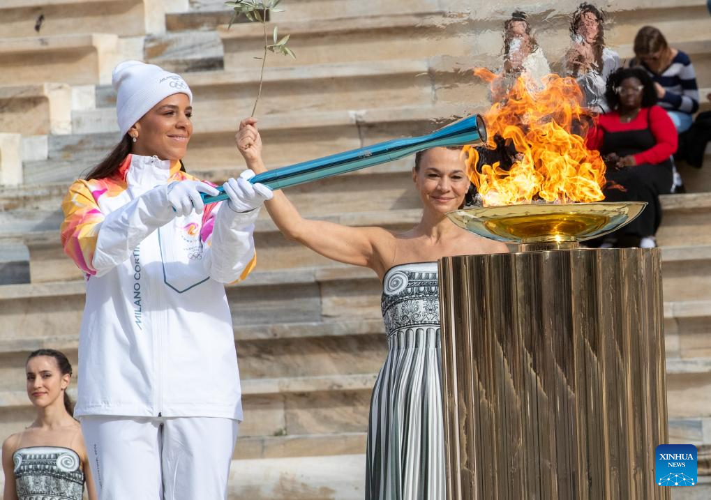 ATHENS, Dec. 4 (Xinhua) -- Greece on Thursday held the Olympic flame handover ceremony for the 2026 Milan-Cortina Olympic Winter Games at the historic Panathenaic Stadium in Athens.
