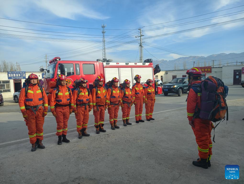 Rescuers rally before heading to the earthquake-affected areas, in Akqi County of Kizilsu Kirgiz Autonomous Prefecture in northwest China's Xinjiang Uygur Autonomous Region, Dec. 4, 2025. A 6.0-magnitude earthquake struck Akqi County in Kizilsu Kirgiz Autonomous Prefecture in northwest China's Xinjiang Uygur Autonomous Region, at 3:44 p.m. Thursday (Beijing Time), according to the China Earthquake Networks Center (CENC). The epicenter was monitored at 41.13 degrees north latitude and 78.40 degrees east longitude. The earthquake struck at a depth of 10 km, the CENC said. (Xinhua)
