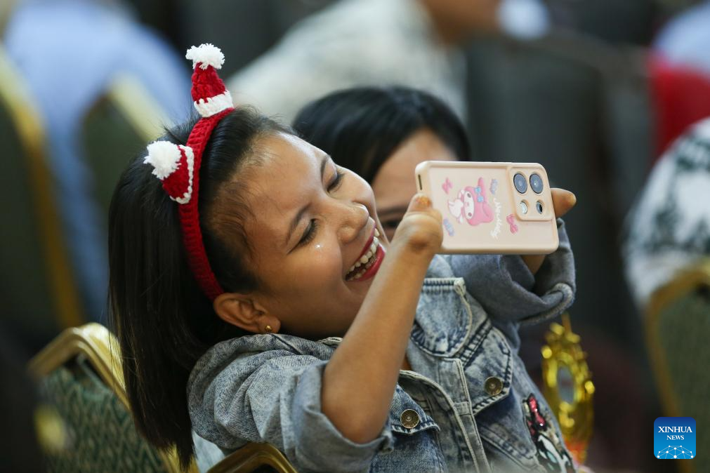 A young woman takes photos during a ceremony to mark the International Day of Persons with Disabilities in Yangon, Myanmar, Dec. 2, 2025. (Xinhua/Myo Kyaw Soe)
