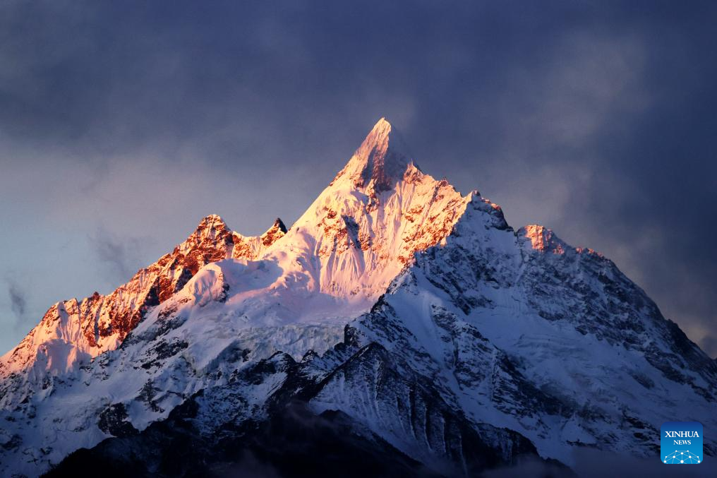 This photo taken on Dec. 3, 2025 shows sunlight shining over Meili Snow Mountain in Deqen County, southwest China's Yunnan Province. (Photo by Liang Zhiqiang/Xinhua)