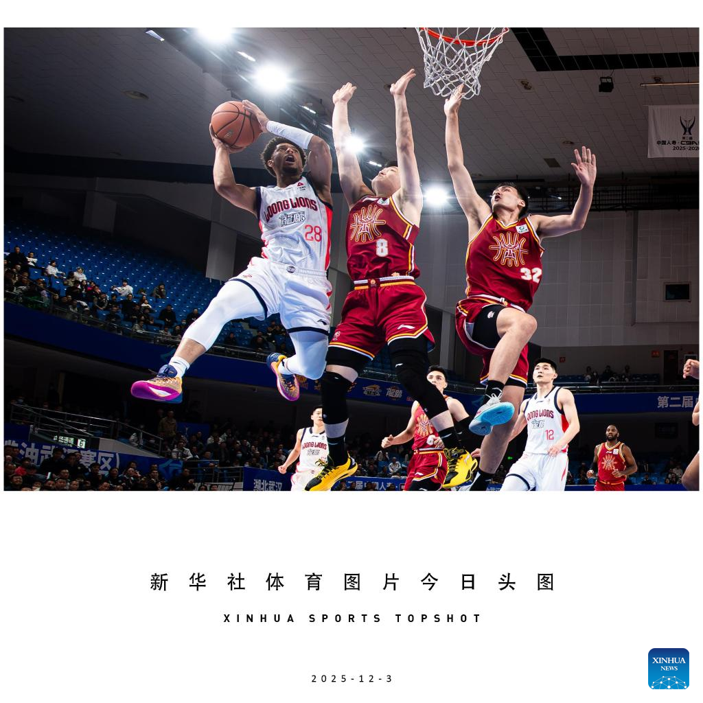 Lindell Wigginton (L) of Guangzhou Loong Lions goes for a layup during the group match between Guangzhou Loong Lions and Shanxi Loongs at the second Chinese Basketball Association (CBA) Club Cup in Wuhan, central China's Hubei Province, Dec. 3, 2025. (Xinhua/Xiao Yijiu)