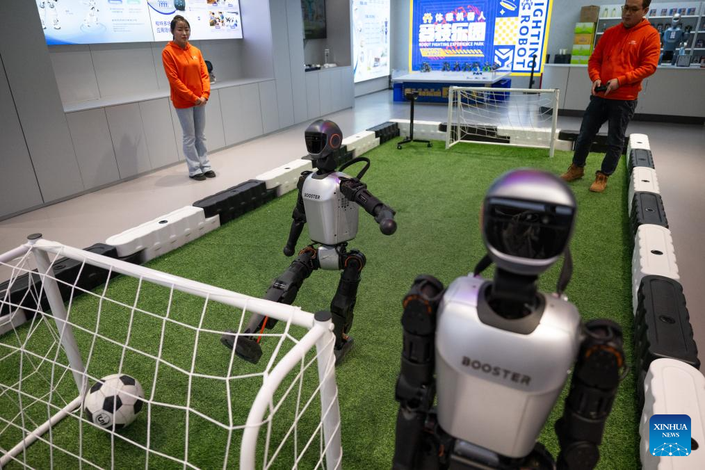 Robots perform sporting techniques at a humanoid robots 7S shop in Wuhan East Lake High-tech Development Zone, also known as the optics valley of China, in Wuhan, central China's Hubei Province, Dec. 4, 2025. Relying on its scientific and educational resources as well as manufacturing advantages, Hubei is accelerating the layout of its humanoid robot industry chain this year.