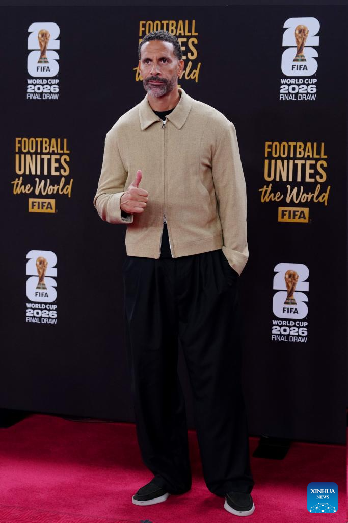 English former football player Rio Ferdinand arrives for the welcome reception ahead of the final draw for the 2026 FIFA World Cup at John F. Kennedy Center for the Performing Arts in Washington, D.C., the United States, on Dec. 4, 2025. (Xinhua/Jia Haocheng)