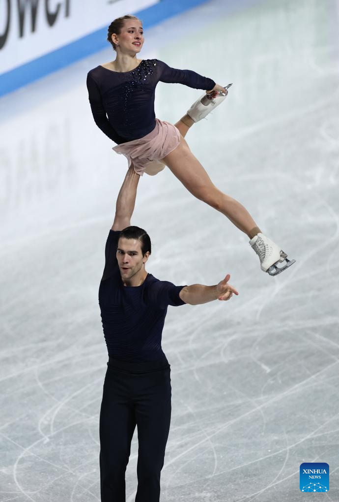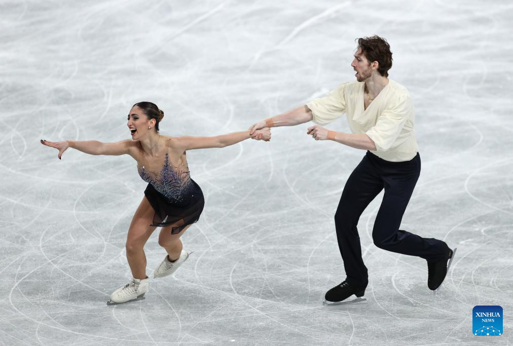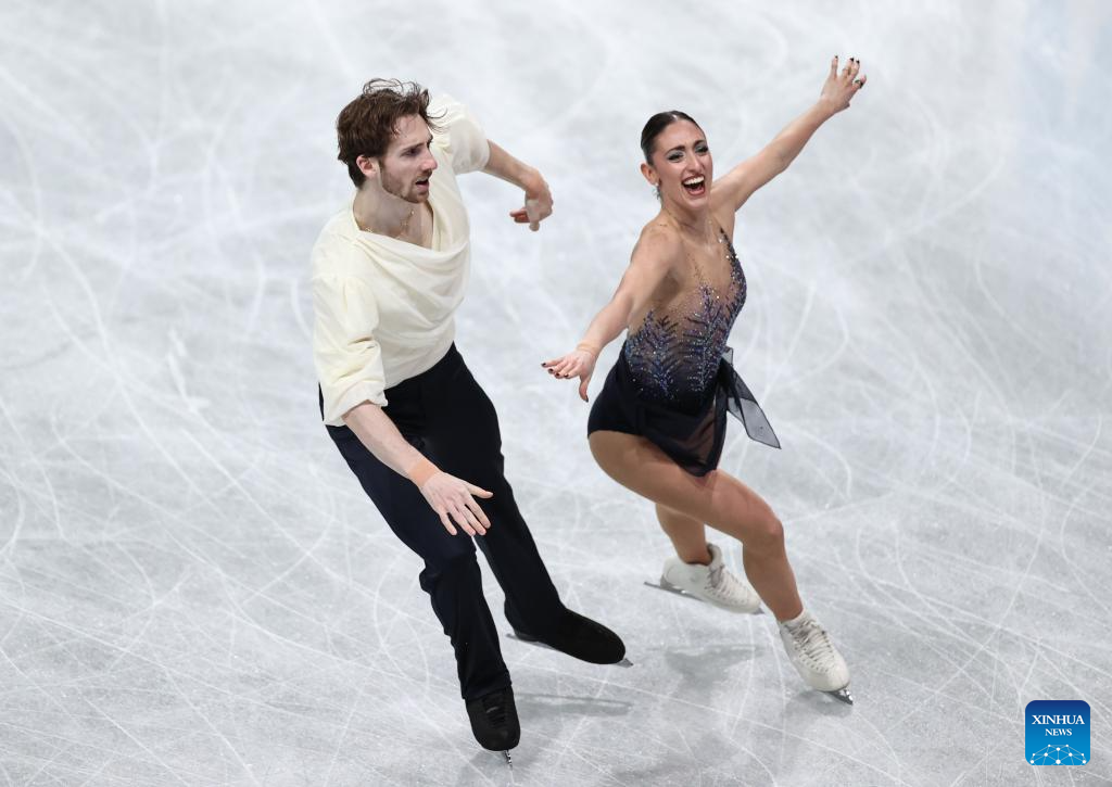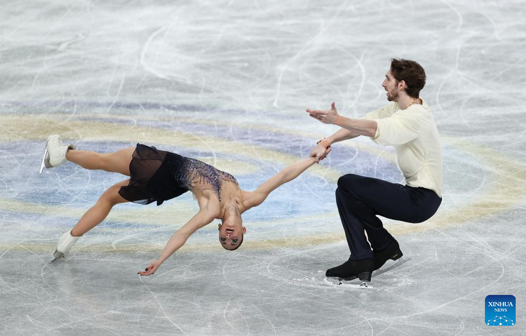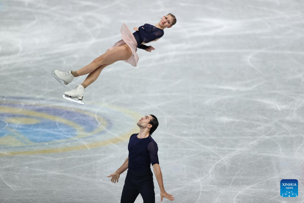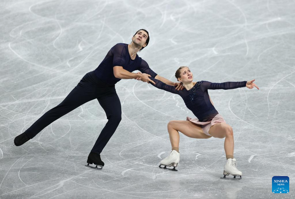 Sara Conti (L)/Niccolo Macii of Italy compete during the pair skating free skating at ISU Grand Prix of Figure Skating Final 2025 in Nagoya, Japan, Dec. 5, 2025. (Xinhua/Yue Chenxing)