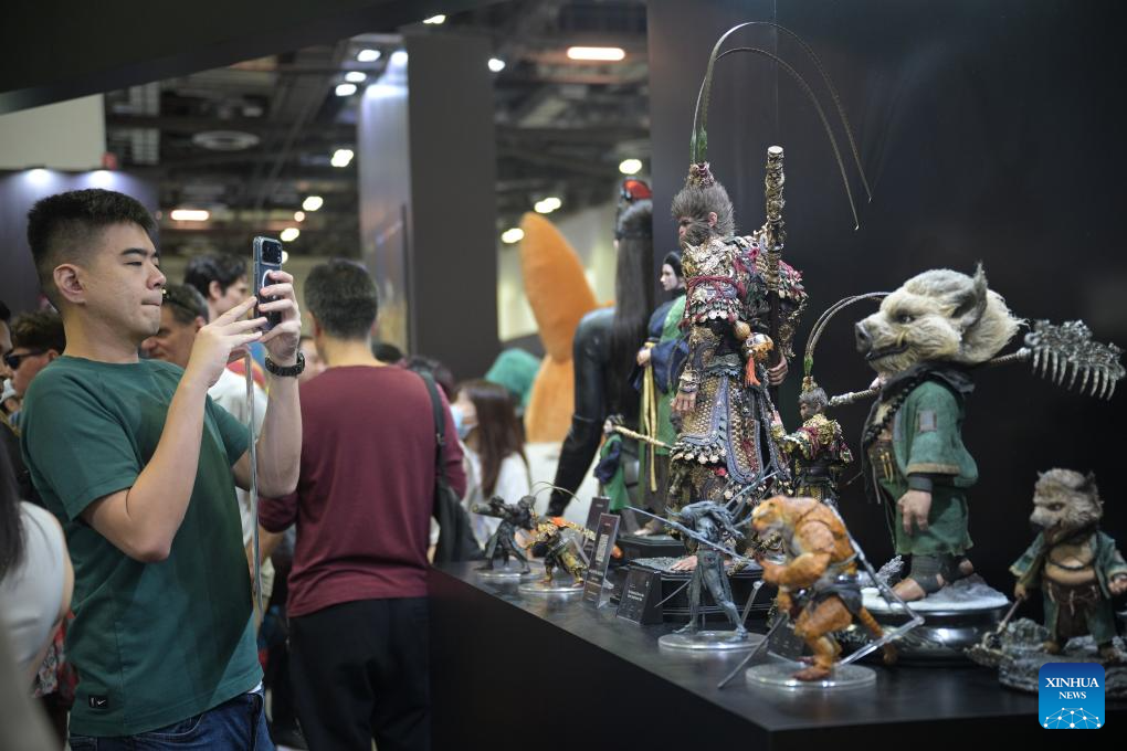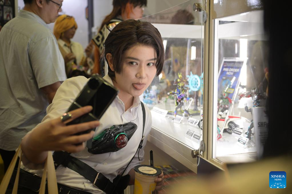 A man takes photos of various merchandise during the Singapore Comic Con in Singapore on Dec. 6, 2025. The event opened here on Saturday. (Photo by Then Chih Wey/Xinhua)