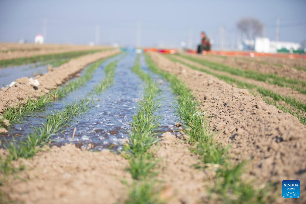 This photo taken on Dec. 6, 2025 shows a winter wheat field after irrigation in Dongying City, east China's Shandong Province. As the solar term of Major Snow, also known as "Da Xue" in Chinese, is approaching, farmers are busy with agricultural production across the country. (Photo by Liu Yunjie/Xinhua)