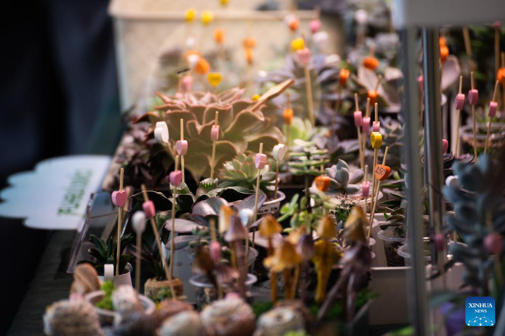 This photo taken on Dec. 7, 2025 shows flowers at a plant and flower market held in Vladivostok, Russia. (Photo by Andrey Matveenko/Xinhua)