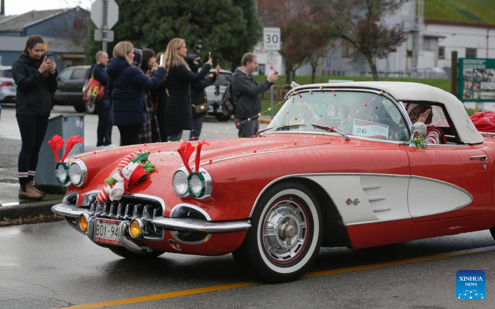 The annual event was held here on Sunday, featuring dozens of classic vehicles with Christmas decorations parading through the communities and collecting toys for charity. (Photo by Liang Sen/Xinhua)