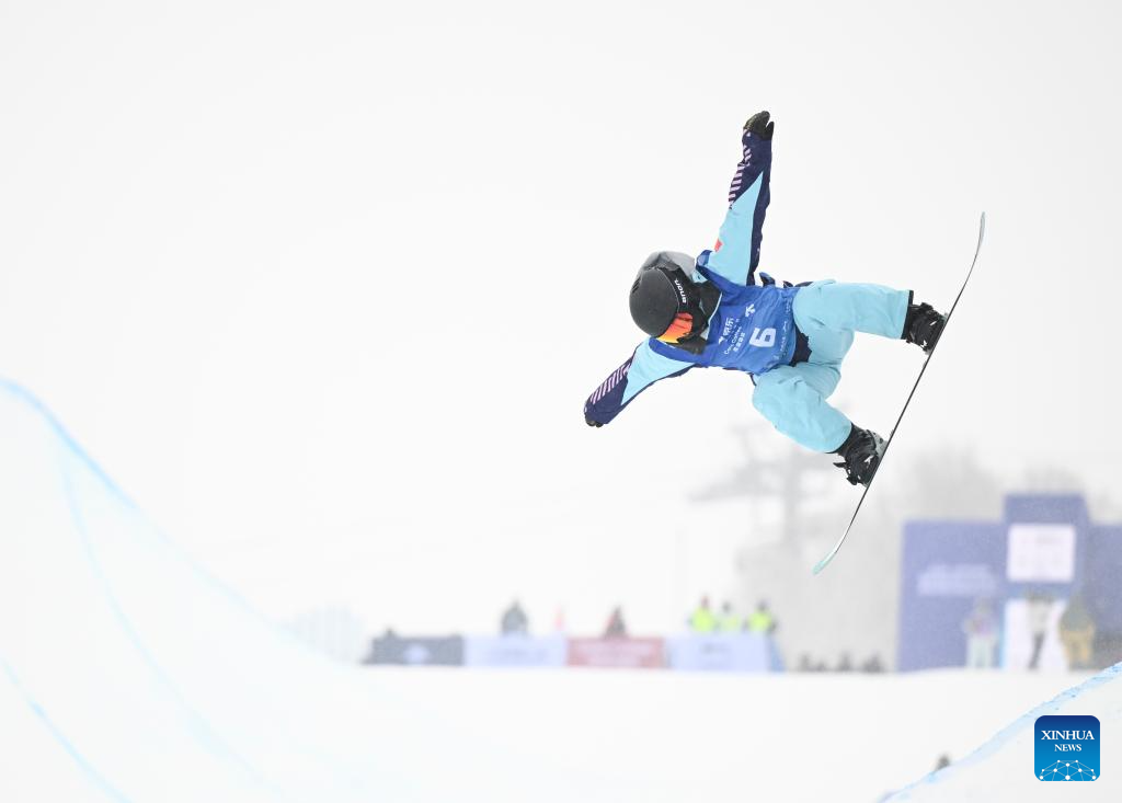Liu Jiayu of China competes during the women's snowboard halfpipe final of FIS Snowboard World Cup 2025 in Zhangjiakou, north China's Hebei Province, Dec. 12, 2025. (Xinhua/Wu Huiwo)