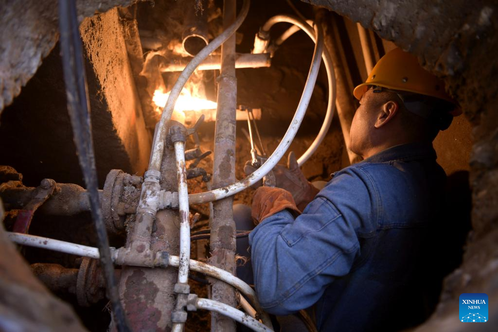 A staff member of a heating company checks heating facilities in Wenxian County of Jiaozuo City, central China's Henan Province, Dec. 10, 2025.