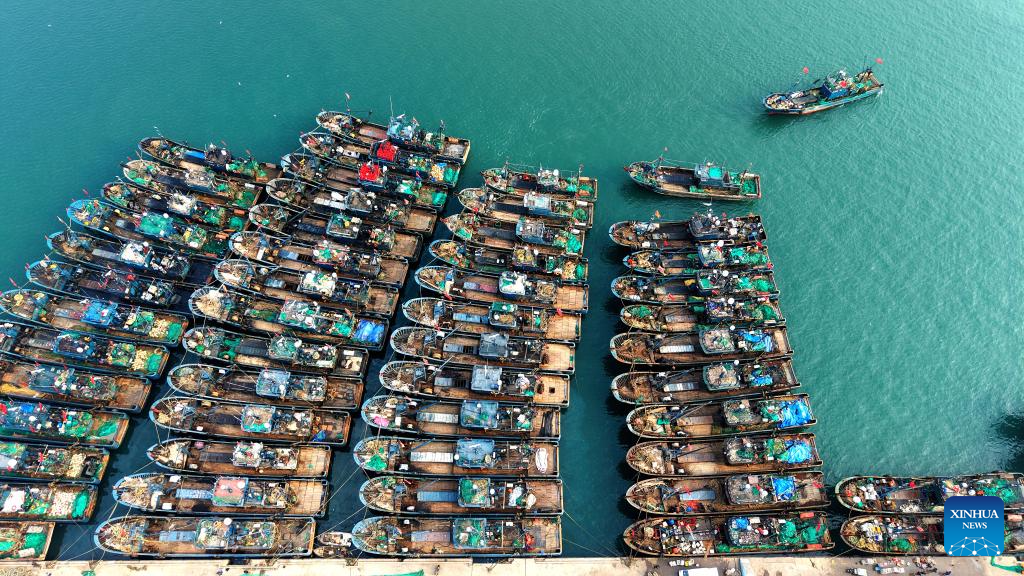 Fishing boats berth at a port at Zhifu Bay Area of Yantai Port in east China's Shangdong Province, Dec. 11, 2025.