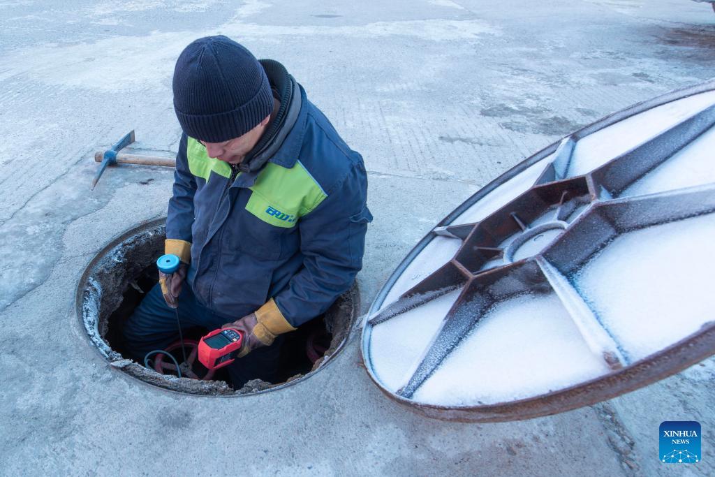A staff member of a heating company inspects the heating network in Fujin City, northeast China's Heilongjiang Province, Dec. 11, 2025.