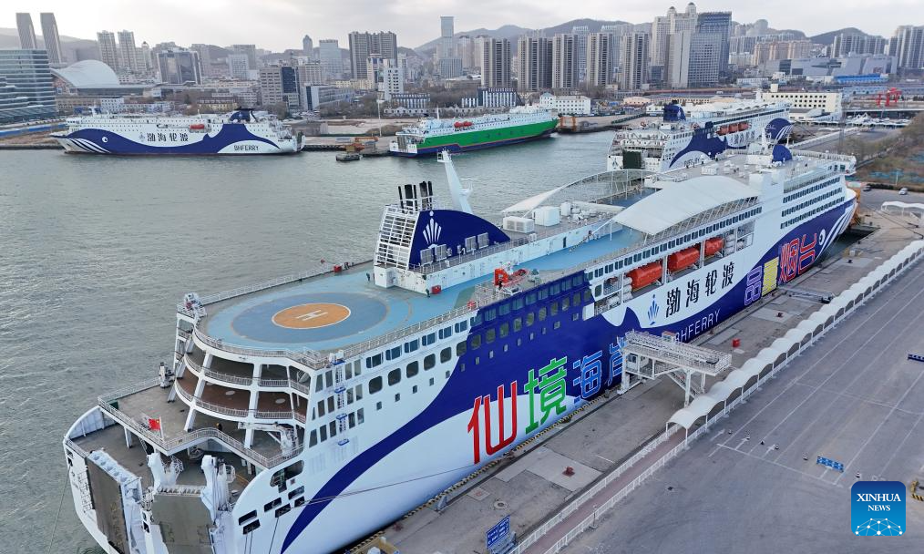 A drone photo shows cruise ships berthed at Yantai Port in Yantai, east China's Shandong Province, Dec. 11, 2025.