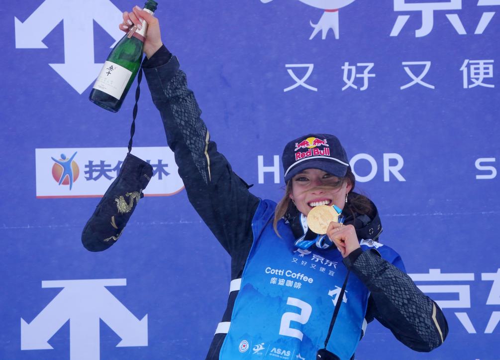 Competing in front of a cheering home crowd amid flying snowflakes, Gu posted a score of 85.25 points in her first run, initially sitting behind Britain's reigning world champion Zoe Atkin, who led with 90.25. While Atkin did not improve her score in the second run, Gu, skiing last, delivered a 91.75 run to seal the victory.