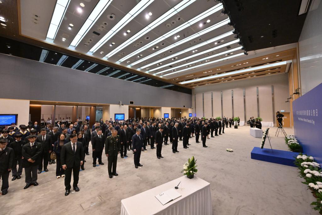 Chief Executive of the HKSAR John Lee and Director of the Liaison Office of the Central People's Government in the HKSAR Zhou Ji attended the ceremony together with principal officials of the HKSAR government, members of the HKSAR Executive Council, representatives of HKSAR deputies to the National People's Congress, representatives of HKSAR members of the National Committee of the Chinese People's Political Consultative Conference, former members of the Hong Kong-Kowloon Independent Brigade of the East River Column, as well as representatives of veteran groups.
