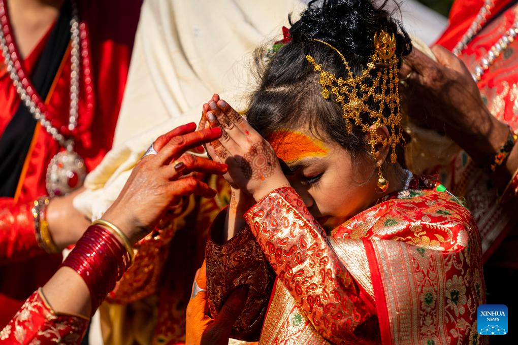 A girl participates in a puberty ceremony known as Gufa in Lalitpur, Nepal, on Dec. 13, 2025. (Photo by Hari Maharjan/Xinhua)