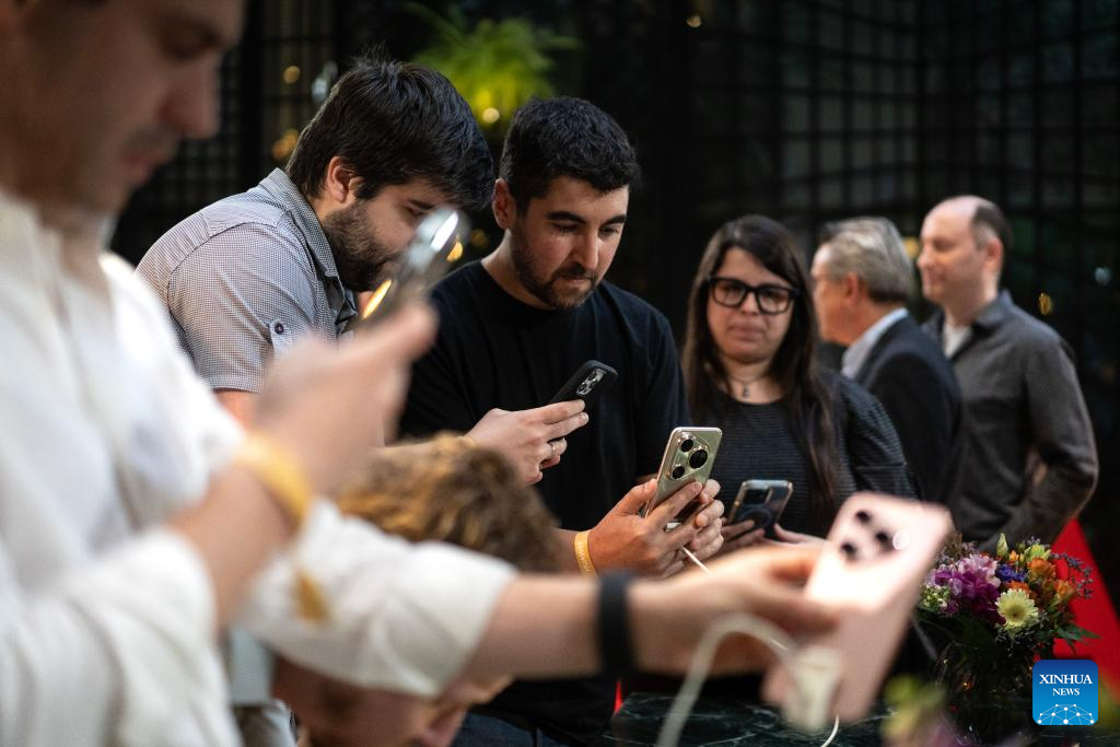 People visit the Huawei product launch event in Buenos Aires, Argentina, Dec. 15, 2025. Chinese tech giant Huawei launched a series of new cellphones and equipment on Monday in Buenos Aires, marking its return to the Argentine smartphone market after six years. (Photo by Martin Zabala/Xinhua)