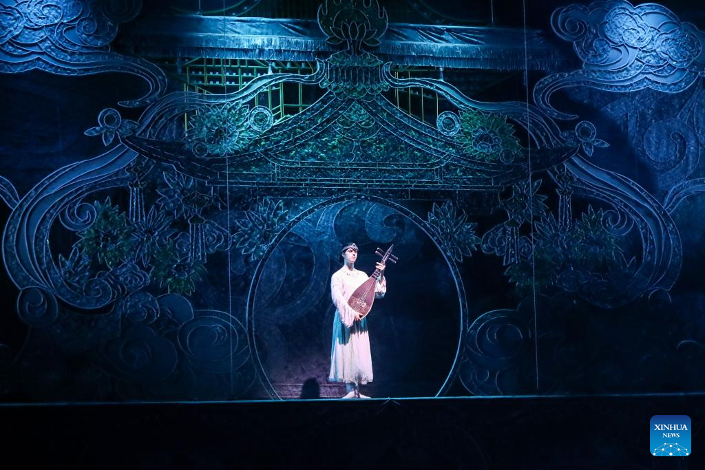 An immersive dance drama "Ancient Sound of Dunhuang" is staged in Dunhuang, northwest China's Gansu Province, Dec. 15, 2025.