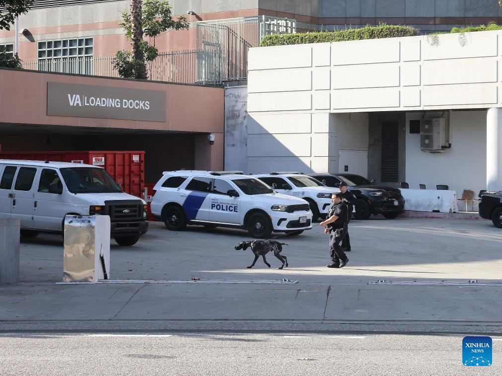 Police officers of the U.S. Department of Homeland Security are on duty at the Metropolitan Detention Center in Los Angeles, California, the United States on Dec. 15, 2025. Four people accused of plotting New Year's Eve bombings in California have been arrested, U.S. authorities said Monday. (Photo by Qiu Chen/Xinhua)