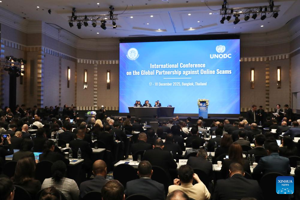 The International Conference on the Global Partnership against Online Scams is held in Bangkok, Thailand, Dec. 17, 2025. The International Conference on the Global Partnership against Online Scams commenced here on Wednesday, aiming to forge a more coordinated response and strengthen cooperation in combating transnational crimes. (Xinhua/Sun Weitong)