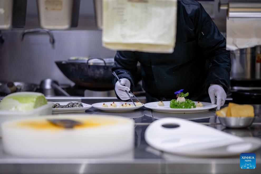 A chef prepares tofu banquet at a restaurant in Jian'ge County of Guangyuan City, southwest China's Sichuan Province, Dec. 13, 2025. (Xinhua/Zhang Xiaoyu)