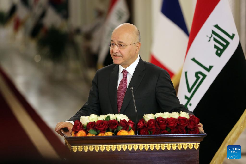 This file photo taken on Sept. 2, 2020 shows Barham Ahmed Salih in Baghdad, Iraq. The UN General Assembly (UNGA) on Thursday elected former Iraqi president Barham Ahmed Salih as the next United Nations High Commissioner for Refugees, to succeed Filippo Grandi of Italy. (Xinhua)