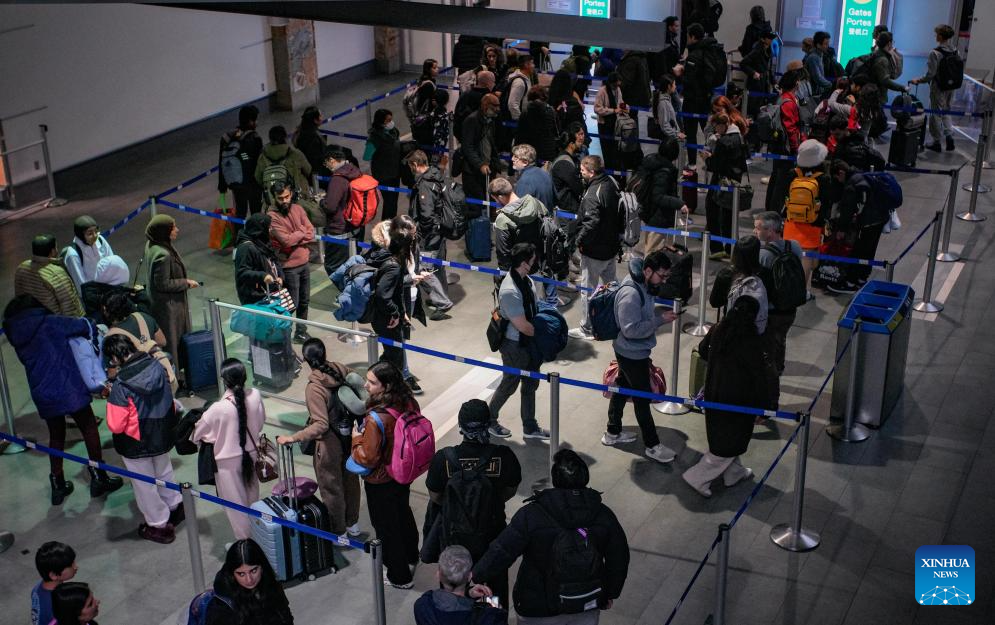Passengers wait in line at a security checkpoint at Vancouver International Airport in Richmond, British Columbia, Canada, Dec. 18, 2025. Winter holiday travel season has come, Vancouver International Airport handled more than 76,800 passenger trips on Thursday. (Photo by Liang Sen/Xinhua)