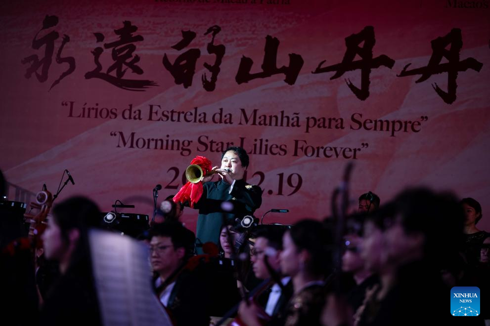 This photo taken on Dec. 19, 2025 shows a concert celebrating the 26th anniversary of Macao's return to the motherland in Macao, south China. Titled "Morning Star Lilies Forever", the concert was held here on Friday. (Xinhua/Cheong Kam Ka)