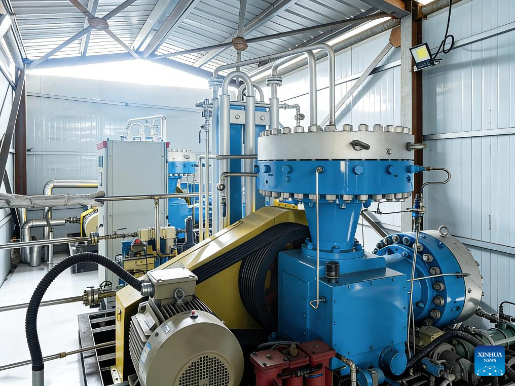 This undated file photo provided by the Nuclear Power Institute of China under China National Nuclear Corporation shows the carbon dioxide recovery pump of Chaotan One in Liupanshui City, southwest China's Guizhou Province. A set of supercritical carbon dioxide (CO2) power generation units commenced commercial operation on Saturday in Guizhou Province, southwest China, marking the country's pioneering commercial application of this innovative technology.