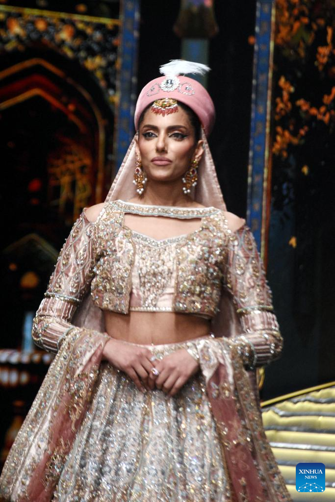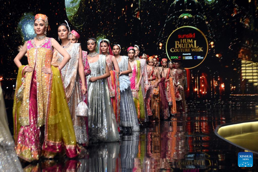 Models present creations during the Hum Bridal Couture Week fashion show in Lahore, Pakistan on Dec. 20, 2025. (Photo by Sajjad/Xinhua)