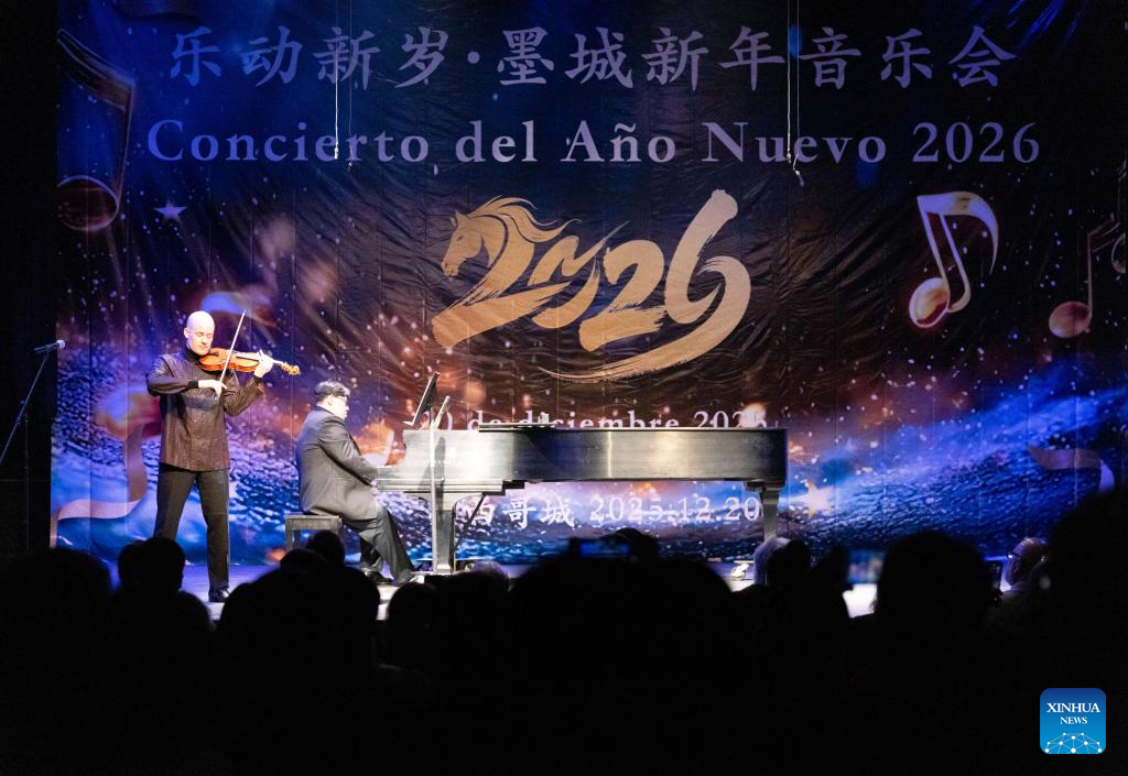 Musicians perform at a New Year concert in Mexico City, the capital of Mexico, on Dec. 20, 2025. The concert featuring both traditional Chinese music and works from the global repertoire was open to the public free of charge. (Xinhua/Li Mengxin)