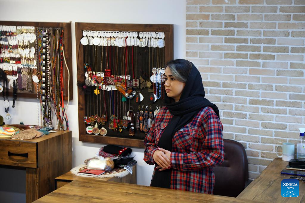 A woman is pictured at a traditional handicraft shop in Zahedan, capital of Sistan and Baluchestan province, Iran, Dec. 18, 2025. Bordering Pakistan and Afghanistan, Sistan and Baluchestan province is located in southeastern Iran. (Xinhua/Shadati)