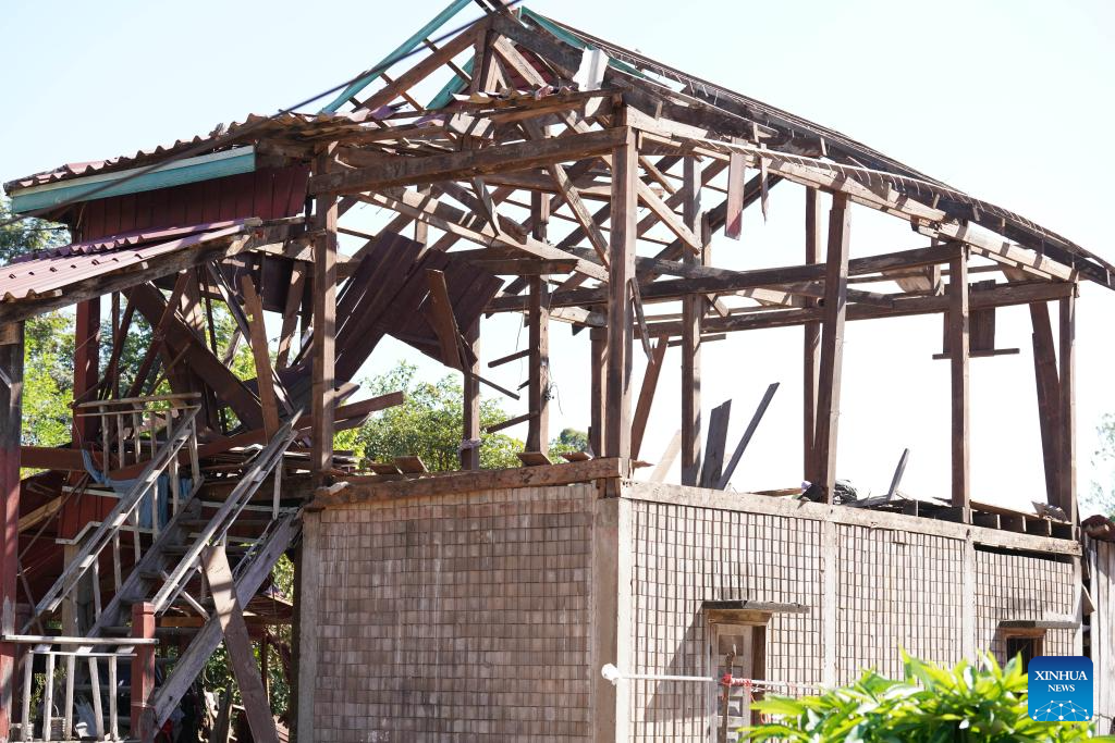 A civilian house damaged by Thailand's artillery shelling is seen in Oddar Meanchey province, Cambodia, Dec. 19, 2025. The civilian death toll in Cambodia has increased to 19, as the renewed border conflict with Thailand has entered its 15th day, according to Cambodia's defense ministry. (Agence Kampuchea Presse/Handout via Xinhua)